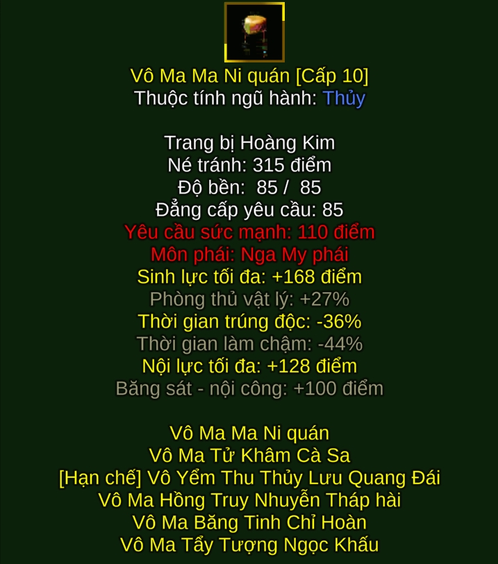 Tên vật phẩm Tỷ Lệ