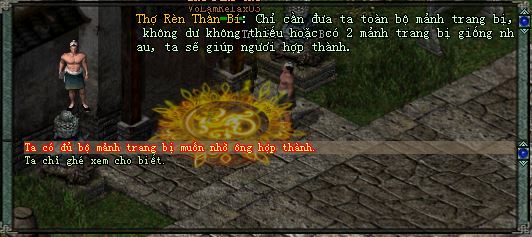 Chức năng: Trùng Luyện trang bị Hoàng Kim Môn Phái