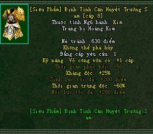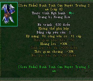 Option gồm : Thời Gian Phục Hồi -50, Sinh Lực +200 điểm, Kỹ Năng Vốn Có+1
