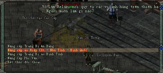 An Bang & Định Quốc: Là bộ trang bị hỗ trợ (kháng tính, sinh lực, thời gian phục hồi). Đây là "trấn phái" cho hầu hết các đường build nhân vật từ trước đến nay.Hiệp Cốt & Nhu Tình: Thường xuất hiện trong các bản cập nhật sau này, bổ sung các chỉ số về sát thương, chí mạng và hỗ trợ đồng đội.Nâng cấp Thuộc tính thay vì dùng trang bị cố định, người chơi hiện nay có thể dùng các nguyên liệu để nâng cấp, gia tăng sức mạnh.