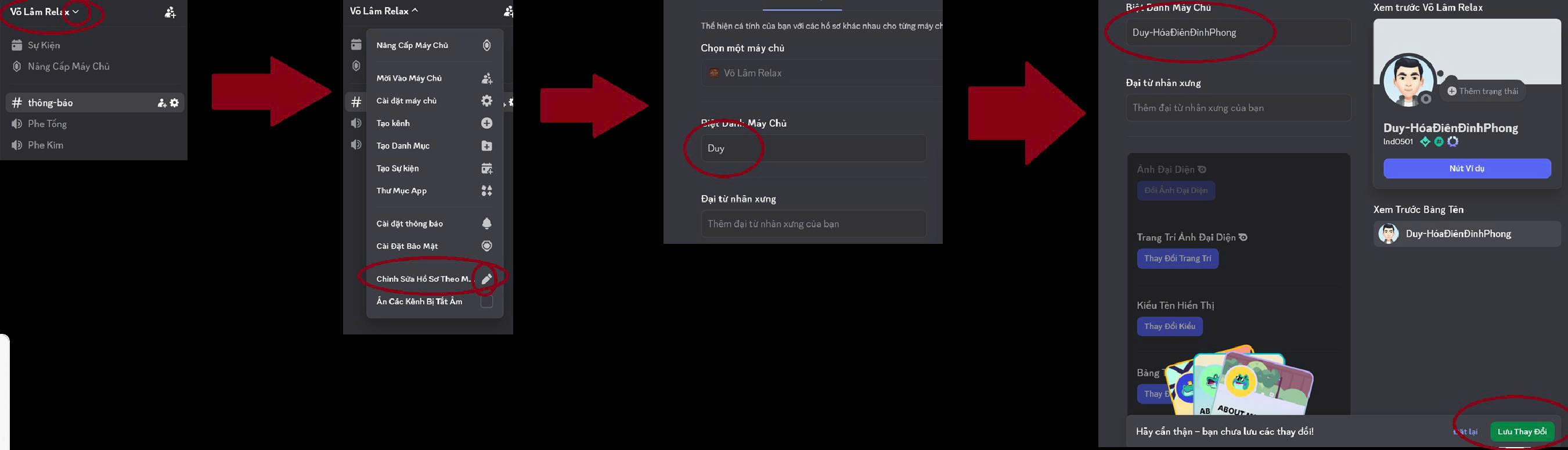 Đổi lại rất dễ và không ảnh hưởng tới tên discord riêng tư cá nhân, chỉ có người trong máy chủ Võ Lâm Relax mới thấy AE đổi tên thôi nhé