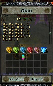 10 Kim Hồn Thạch + 10 Mộc Hồn Thạch + 10 Thủy Hồn Thạch + 10 Hỏa Hồn Thạch + 10 Thổ Hồn Thạch + 10 Đá Luân Chuyển + 2 Pha Lê