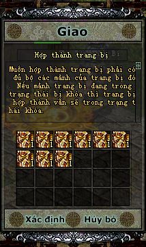 Công thức Trùng Luyện trang bị Hoàng Kim Môn Phái