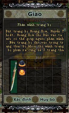 Chức năng: Trùng Luyện trang bị Hoàng Kim Môn Phái