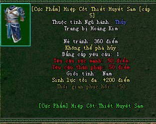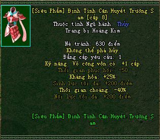 Option gồm : Thời Gian Phục Hồi -50, Sinh Lực +200 điểm, Kỹ Năng Vốn Có+1