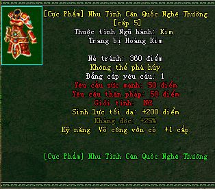 Nhu Tình, Hiệp Cốt, Định Quốc Cực Phẩm [ Cần 1 trang bị thường để nâng cấp lên Cực Phẩm ]