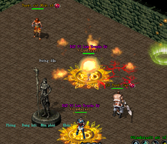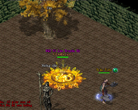 2 acc chia ra 2 góc có 4 cái cây, click đồng thời 2 cây đó sẽ xuất hiện con Trần Tiều, giết chết con Trần Tiều là qua ải. Nếu không click đồng thời 2 cây thì sẽ xuất hiện rất nhiều NPC.