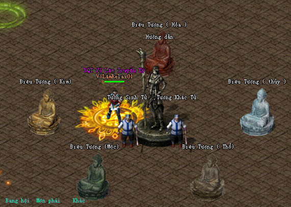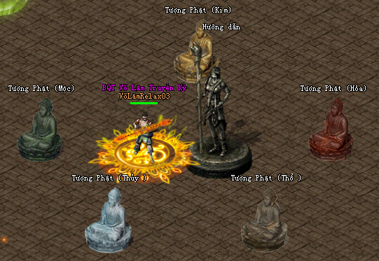 1 người mở tượng phật theo thứ tự Kim - Mộc - Thủy - Hỏa -Thổ , sau đó sẽ hiện ra 18 con đồng nhân (có phản dame) đánh chết hết ra con boss Đồng nhân (cũng có phản dame) , đánh chết là qua ải.